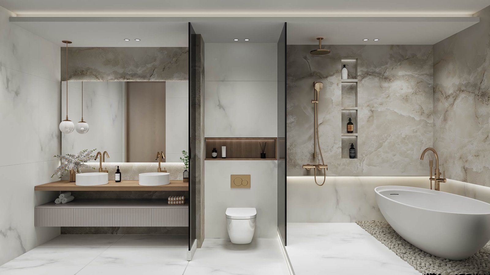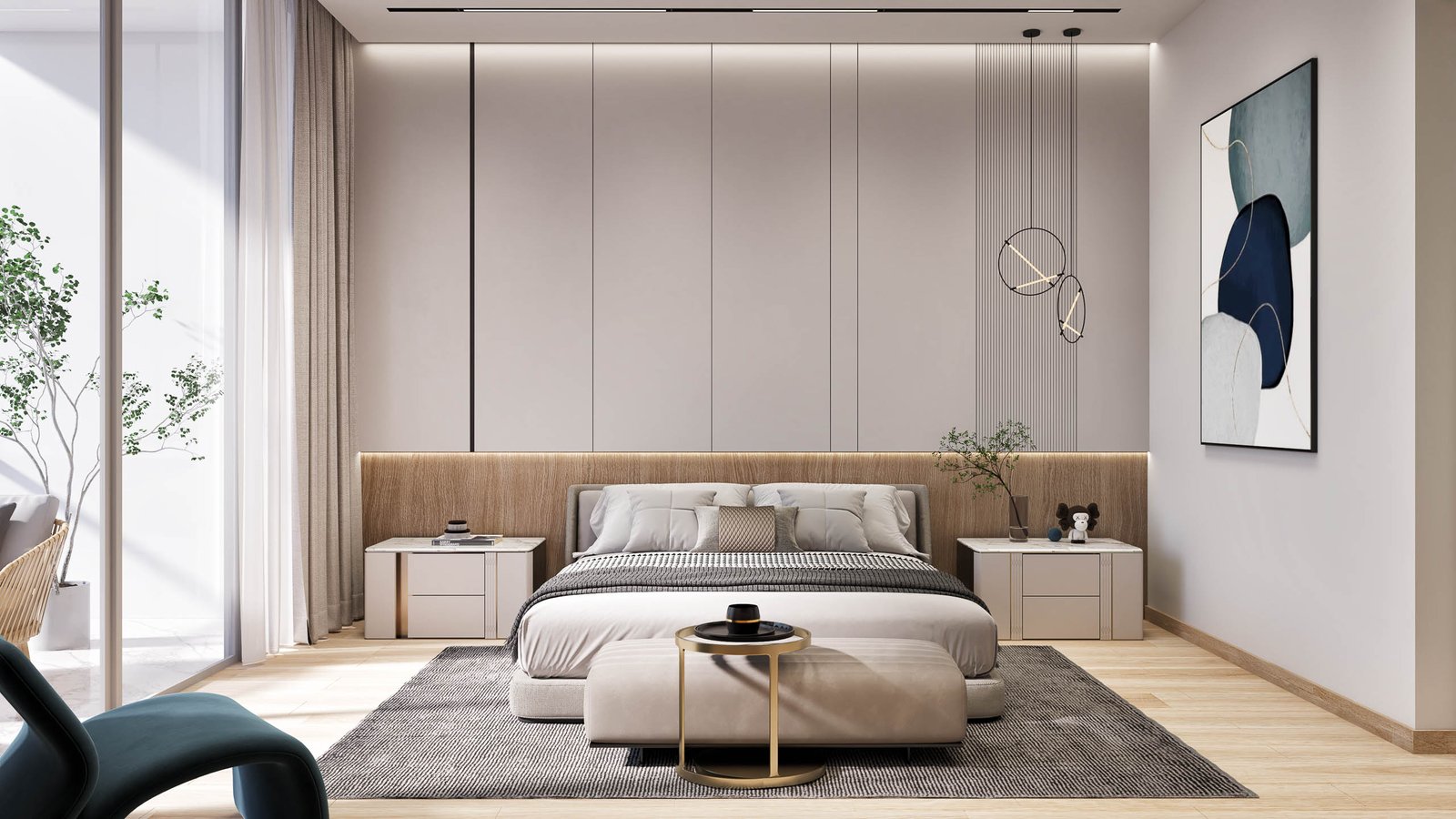 The upper level is primarily meant to be a family space. The stairs lead up to the “Family-room” – an open, common space that can be customised as required. There is also room for a corner pantry. The rest of the upper level is taken up by the bedrooms, which have attached bathrooms and dressing rooms. The Master Bedroom also has an attached sea-facing balcony.