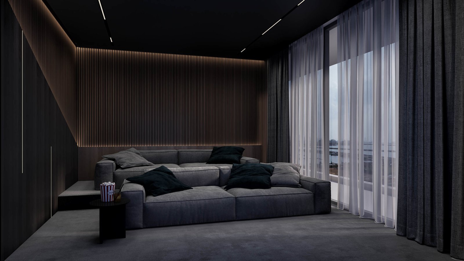 In the middle section is the “Family-room” or the home theatre (5.2×4.55 m) and a gym (3×4.55 m). Each unit also has a guest toilet adjacent to the living room, a laundry room next to the kitchen and a spare room with an attached bathroom.